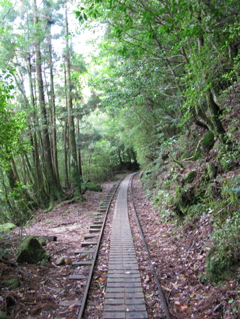 はじめはひたすらトロッコの線路を進みます。