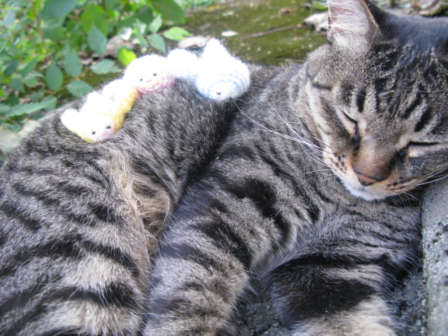 寒くなってきたので、ヨシダにニット帽をかぶせました。